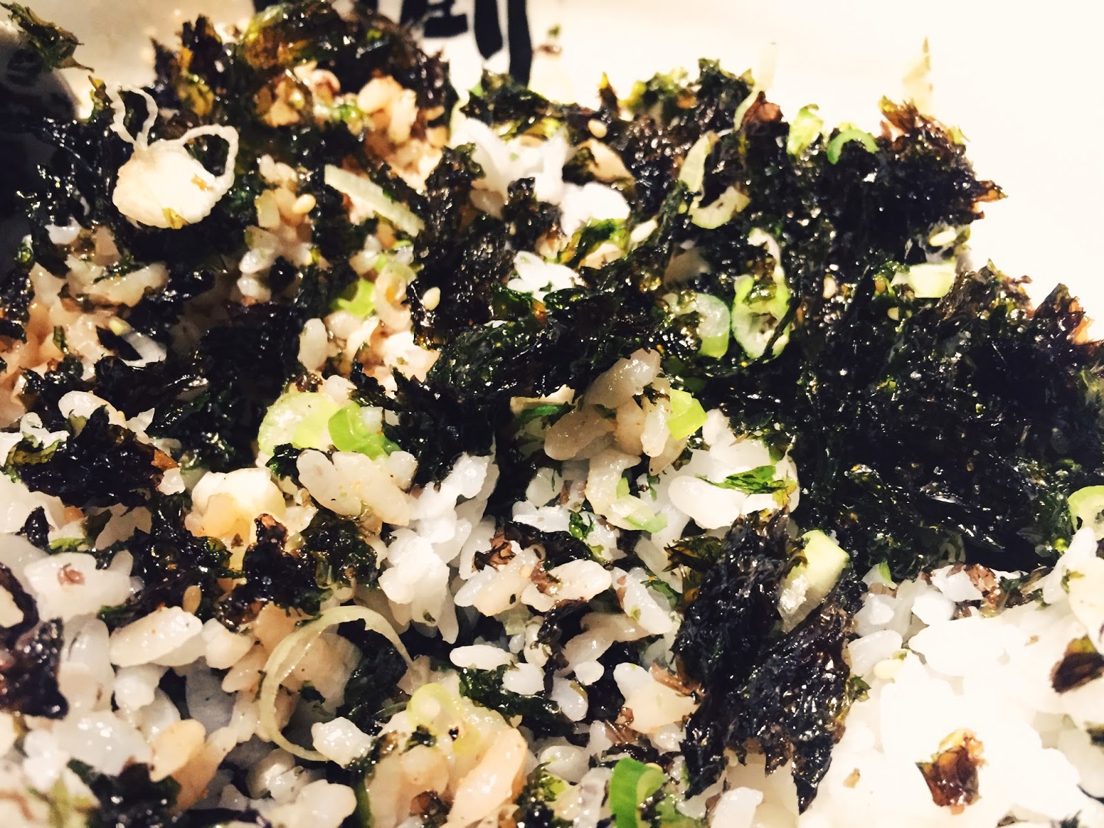 它乍看之下以為只是單純鋪了海苔片的白飯,但挖開之後就會發現內有玄機。裡頭還藏著滿滿的蔥花以及醬汁,吃起來有多層次口感,非常過癮。