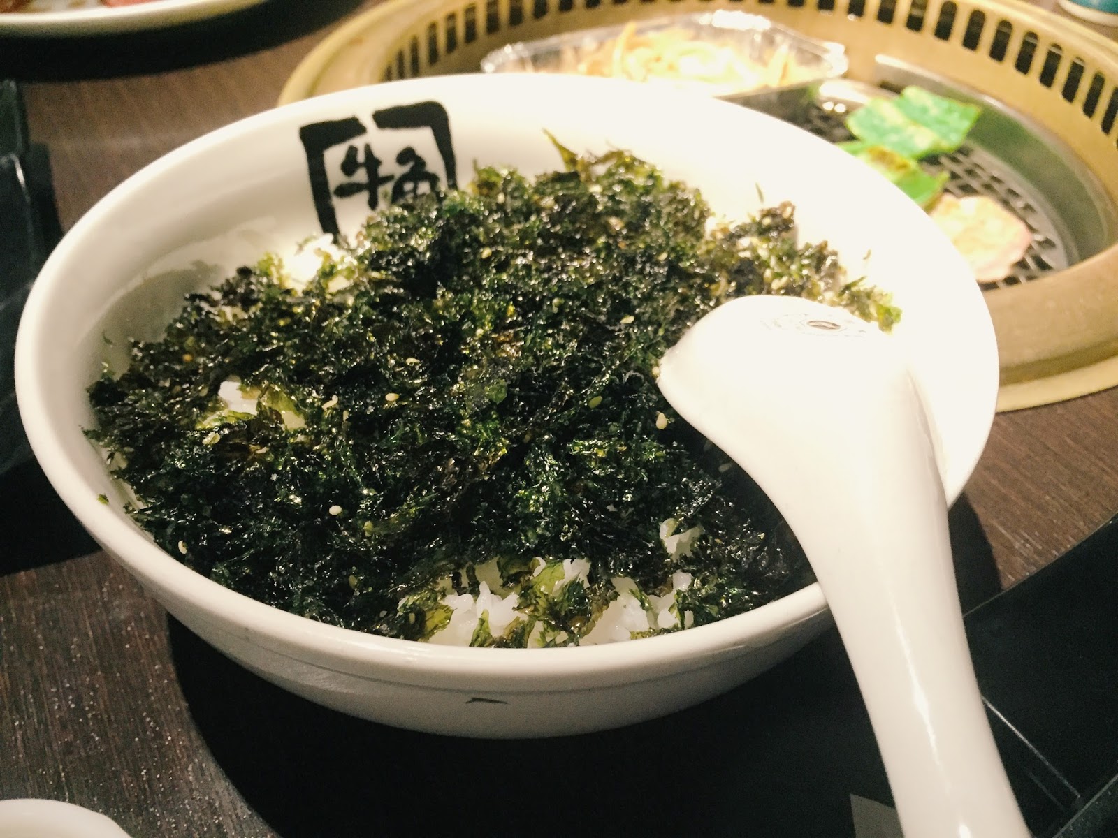 而由於個人還蠻喜歡吃燒肉配飯的,於是我們也叫了一碗牛角的牛五花專用飯(但我們好像都沒有拿來配牛五花)。