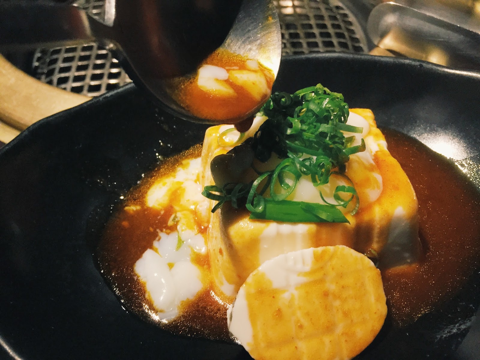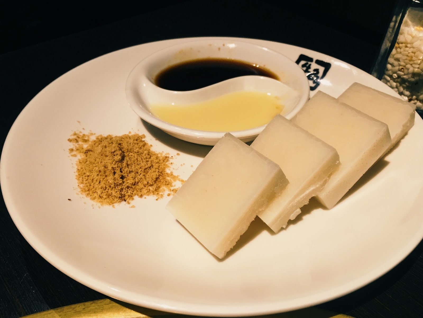 那像太極圖一樣的醬料,白色的是甜奶油,黑色的則是醬油膏。滿心期待那會是黑糖的我,咬下去才發現那是鹹的,這種心情你們能體會嗎?